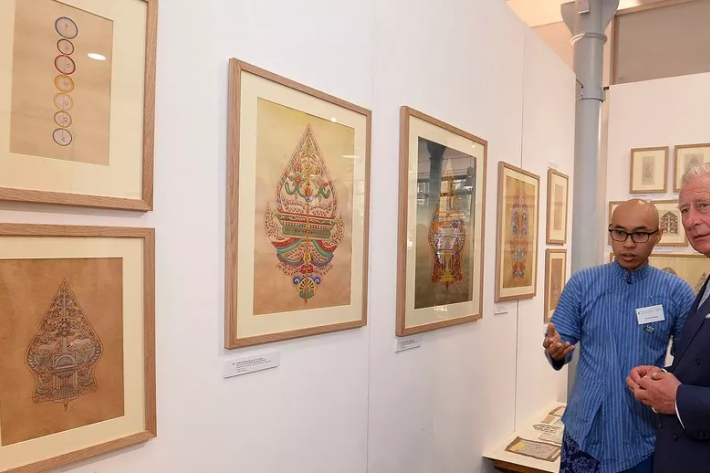 Prince Charles, Prince of Wales speaks to artist Ashley Nandong as he attends The Prince's Foundation School of Traditional Arts degree show in Shoreditch on June 27, 2018 in London, England. The 'PFSTA' specialises in teaching, researching and promoting the practice and theory of the arts and…
