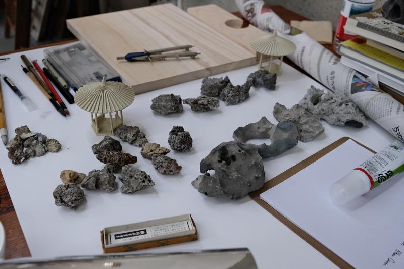 作為展現教學成果的重要環節,“紙本園林”和“模型園林”始終被導師與學員所重視。一方面,學員們將課堂中和園林里的感受、思考與領會,以攝影、畫報、打印、剪貼、繪畫和書寫等組合內容,作為理論,以紙本展現的方法來進行圖文園林的表達。另一方面,學員們將世界觀和方法論的學習、發想和創意,以圍牆、石頭、樹木、亭子、水池和裝置等構成元素,作為實踐,以模型建構的形式來進行微型園林的展現。