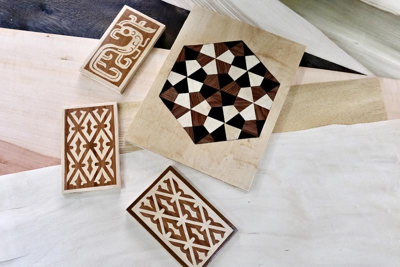 學員們發揮了獨特的創造力,從設計構思好的圖案進行製作到抛光與後期處理完成了一件獨一無二的細木鑲嵌作品。